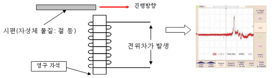 영구자석에 코일을 감아 자성체를 띤 물질을 가져가면 영구자석 주변에 자속량의 변화가 일어난다. 이러한 자속량의 변화가 코일 양단에서 발생하게 되므로 코일 양단에는 자속의 변화에 의한 유도 전압이 발생한다.
