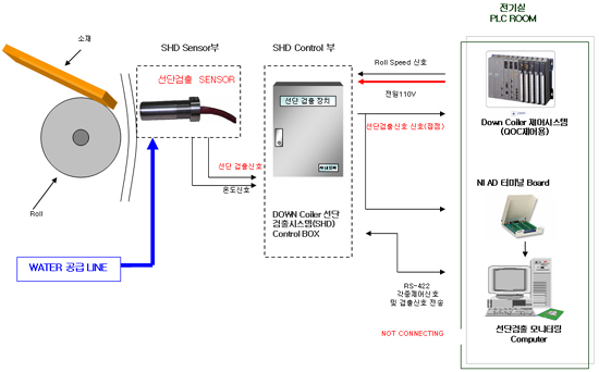 소재의 Down Coiler 진입시 정확한 선단 검출을 위한 것으로 검출된 신호는 접점 신호로 변환된 후 Down Coiler 제어용 PLC로 전송되어 Down Coiler의 QOC 제어에 사용된다.