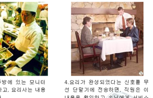 2. 주방에서는 주문한 요리내용별로 분류하여 전광판 또는 모니터에 표시하므로 주문한 요리내용을 한눈에 알 수 있다. |