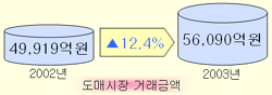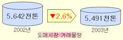 | • 총거래량 / 도매시장거래량 : 2002년 42.9% → 40.9%(▼ 2.0%) |