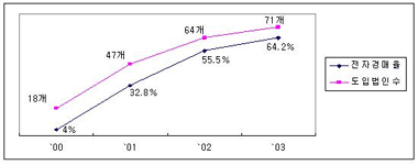 <연도별 전자경매율 및 전자경매 도입법인 수>