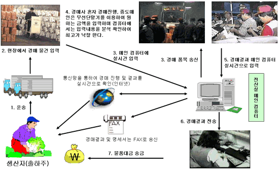 | • 도매시장 종사자들은 급변하는 농산물 유통환경과 정보기술발달에 적극 대응하여 전자경매 실시품목을 확대하고 경락정보를 실시간 제공하는 등 농산물 거래의 공정성과 투명성을 확보하고 있는 것으로 조사 |